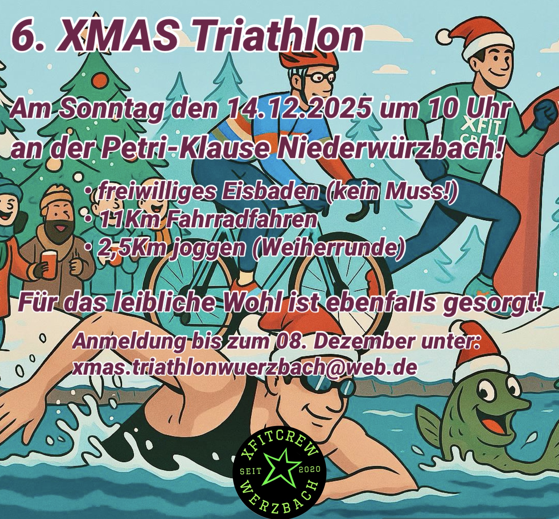 Xfit Crew Werzbach und Petri - Klause Niederwürzbach präsentieren den 6. Würzbacher Weiher Xmas Triathlon 2025!